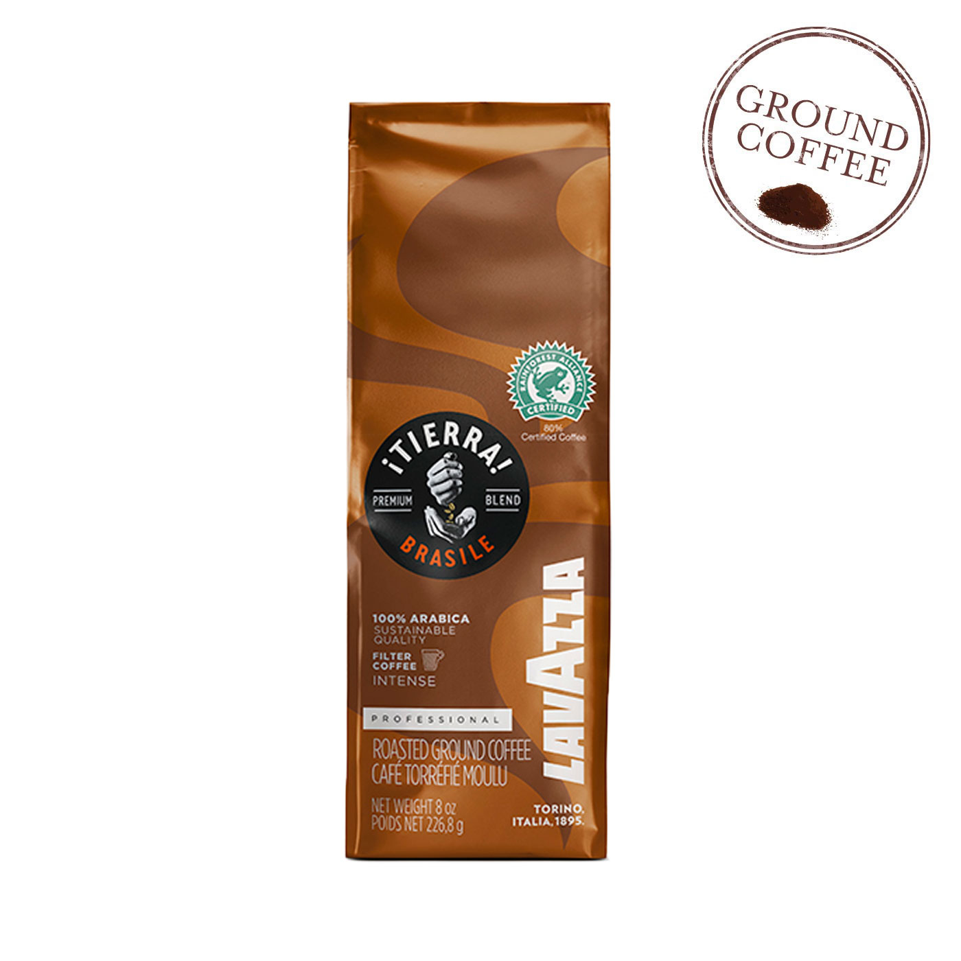 The ¡Tierra! Brazil Selezione Ground Bag from Lavazza is a premium espresso blend obtained with coffee beans from two Arabica plantations from Brazil: Lambarì and Cereja Passita.