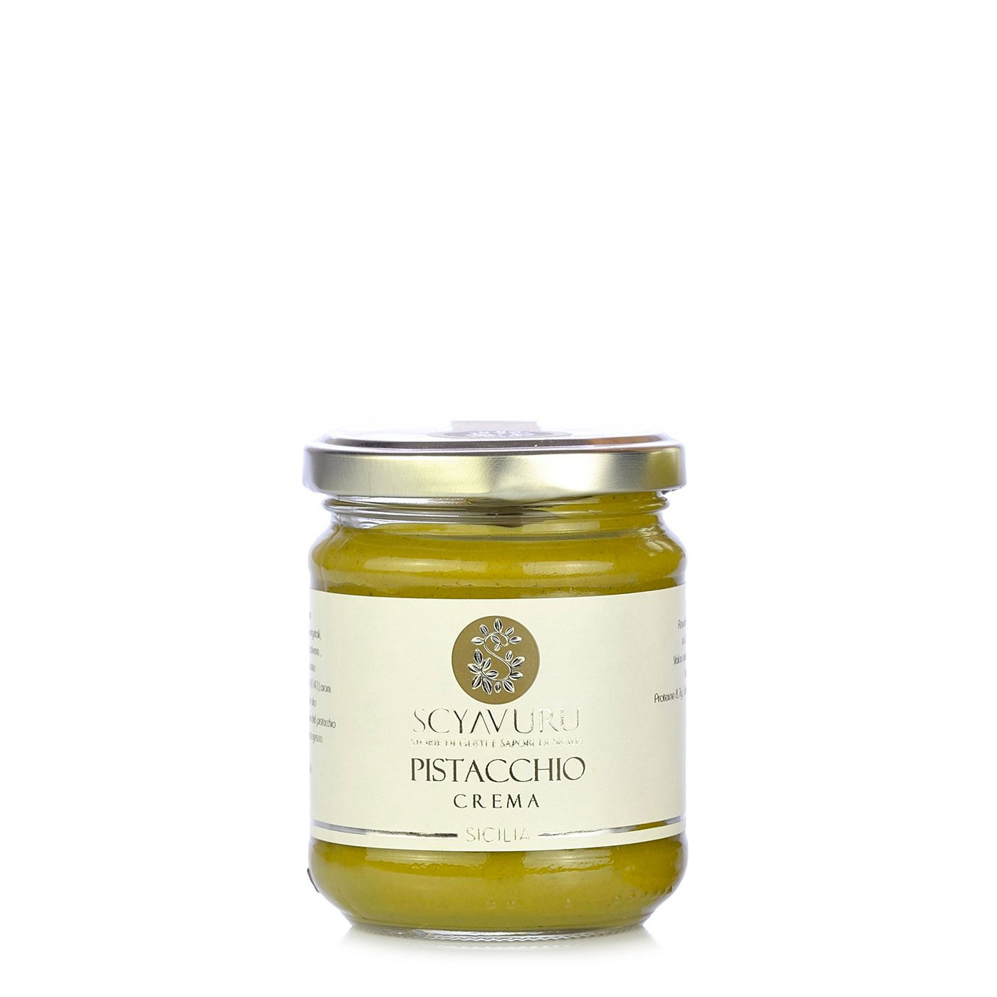 The Crunchy Pistachio Cream from Scyavuru is made with delicious Sicilian pistachios. A velvety cream enriched with crunchy pistachio bits, this spread is a must-have among the many Sicilian regional delicacies.