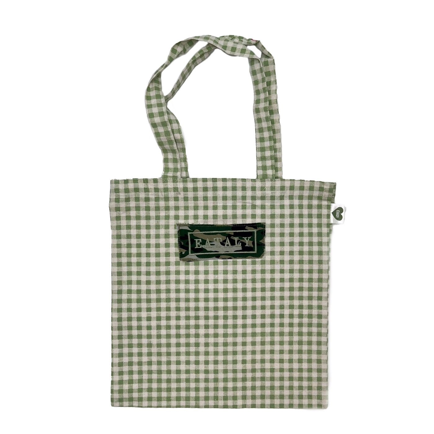 A stylish yet simple Eataly Checked Green Camouflage Bag to take with you everywhere you go. Use this sturdy bag instead of plastic bags when you shop – you’ll look great and the environment will thank you too!