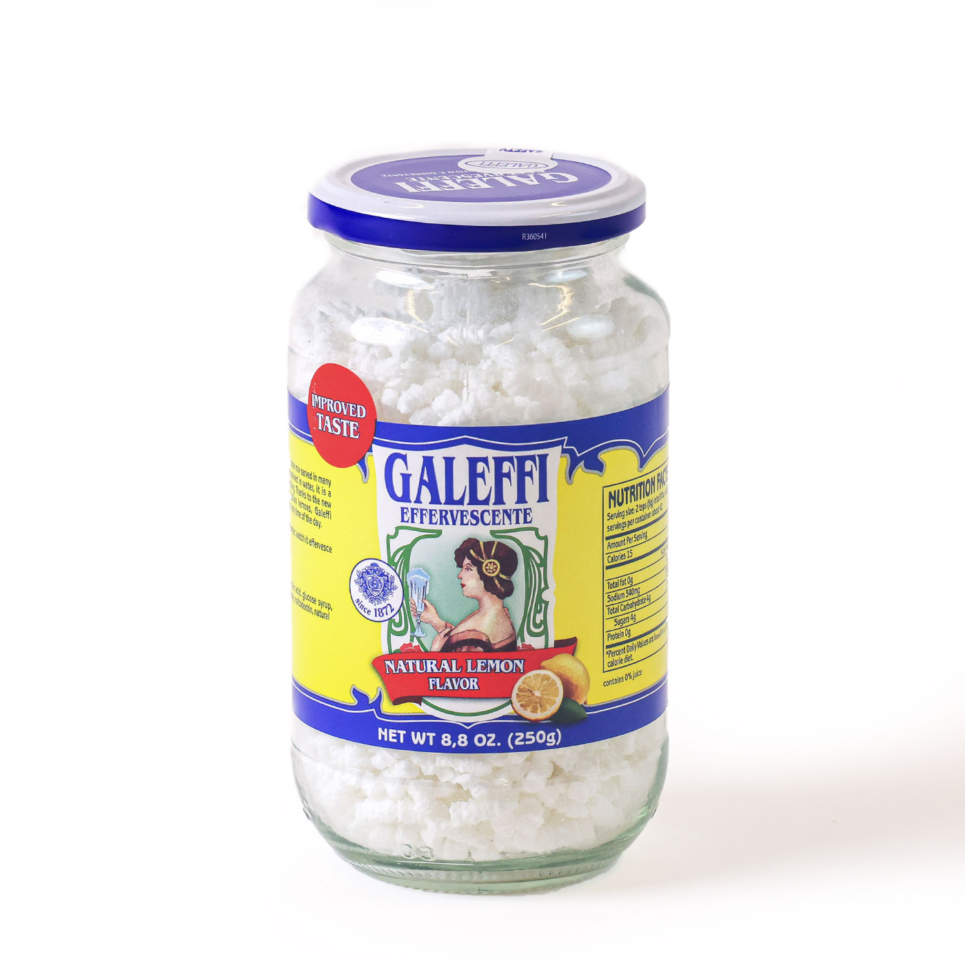 This lemon-flavored effervescent antacid from Galeffi is a traditional Italian sodium bicarbonate powder. Due to its restorative properties, Galeffi is often taken after meals as a digestive. Place two heaping teaspoons in a glass of cold water, stir, and drink while it fizzes.
