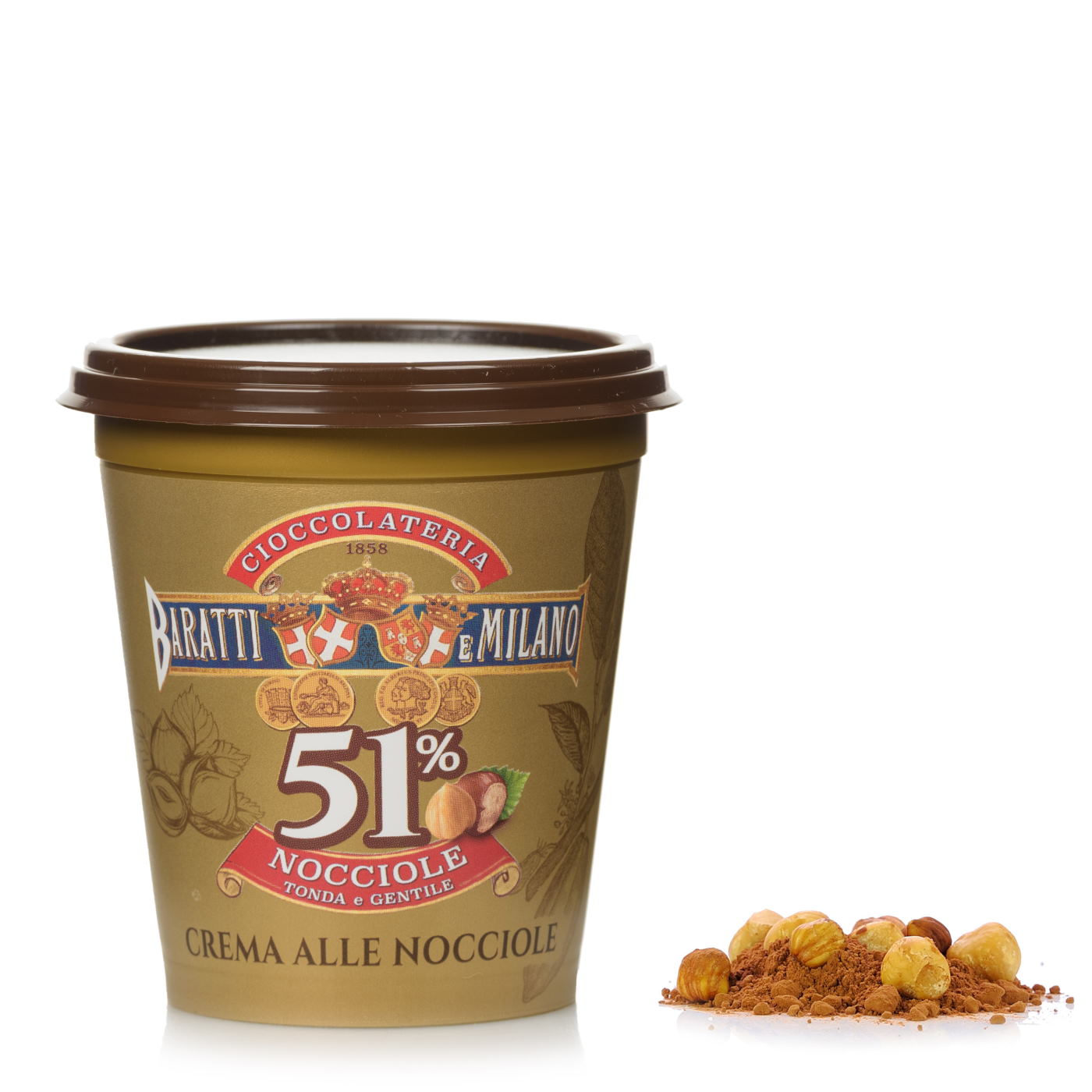 Baratti & Milano’s famous gianduja spread is a fusion of finely ground Tonda Gentile delle Langhe IGP hazelnuts and smooth chocolate cream.