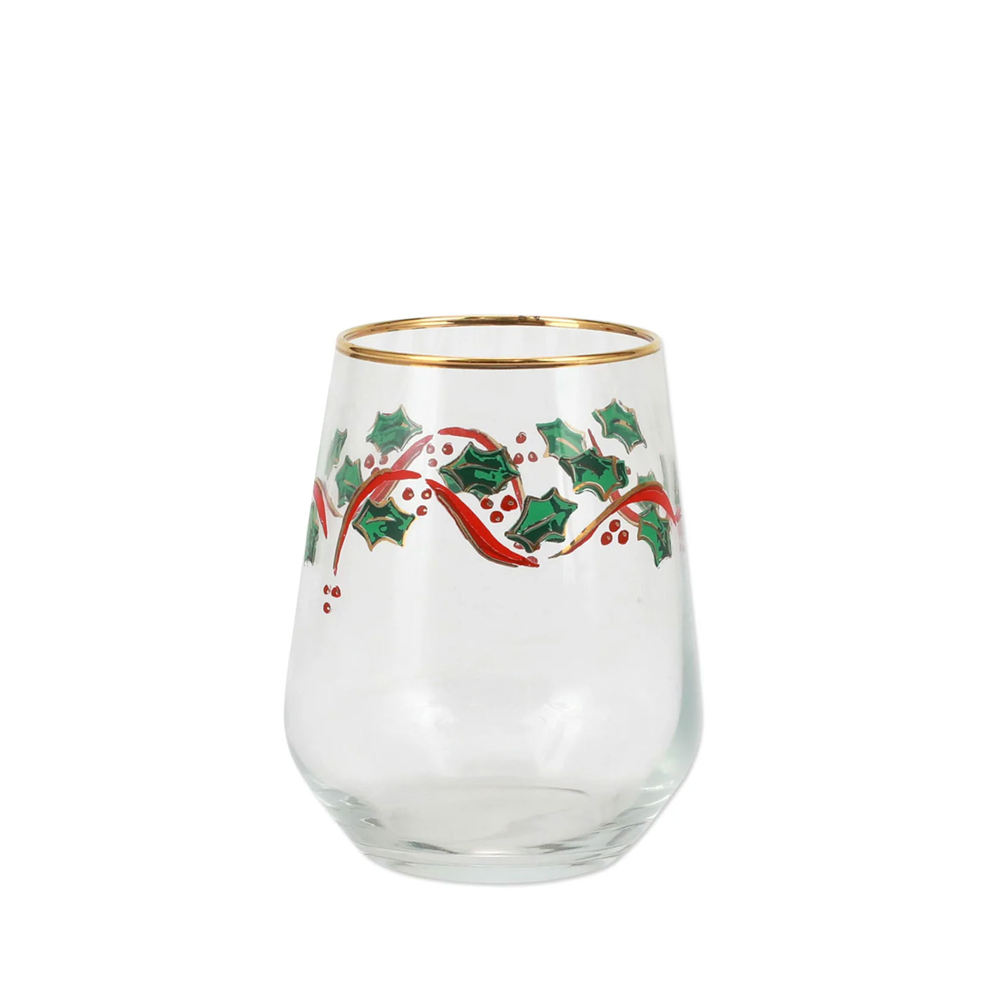 When preparing for your festivities, make sure you don’t miss out on this beautiful Holly Stemless Wine Glass, from Holly, Vietri’s festive drinkware assortment that easily adds to holiday cookie exchanges or white elephant get-togethers.