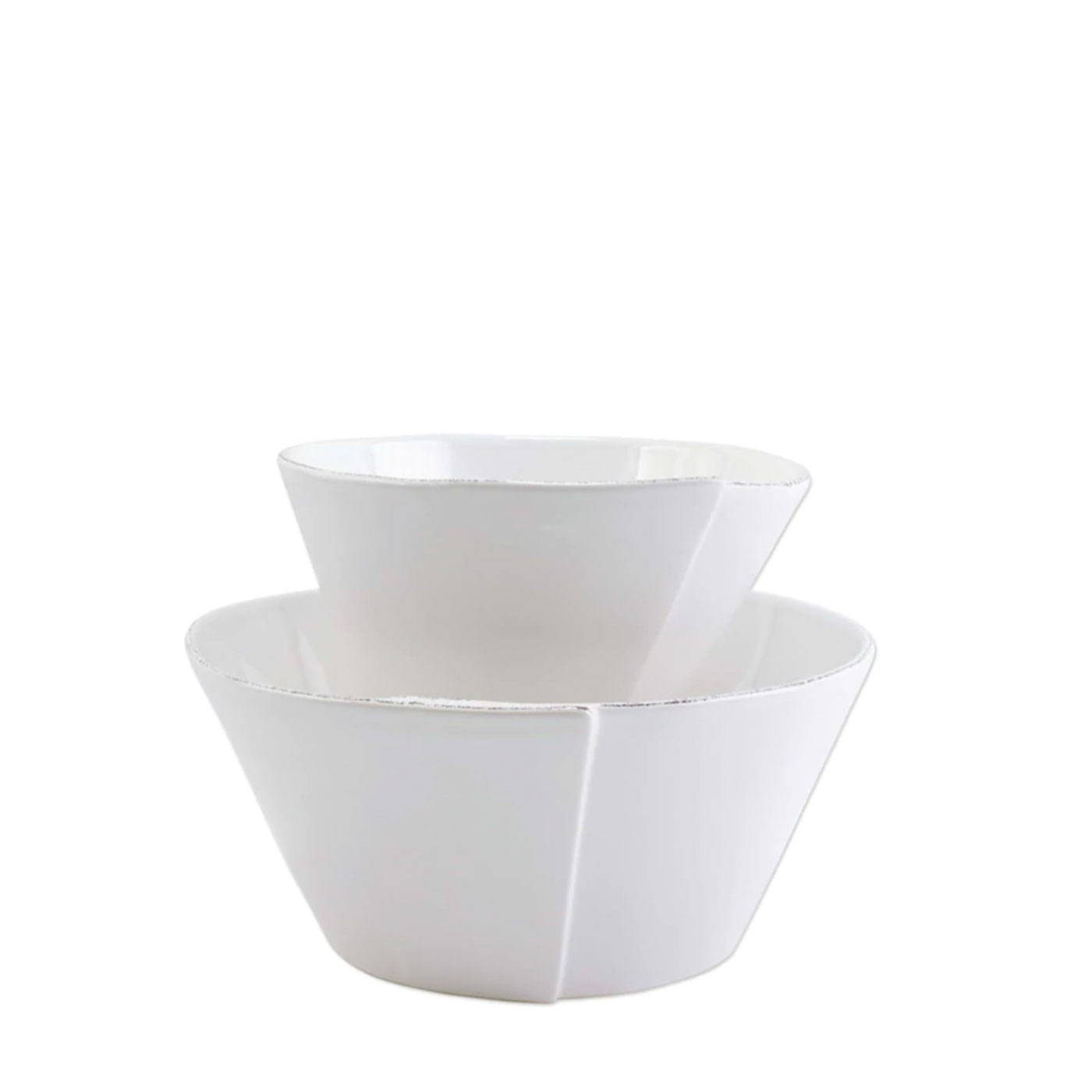 Two-Piece Serving Bowl Set contains the Lastra White Medium Stacking Serving Bowl and the Lastra White Large Stacking Serving Bowl.