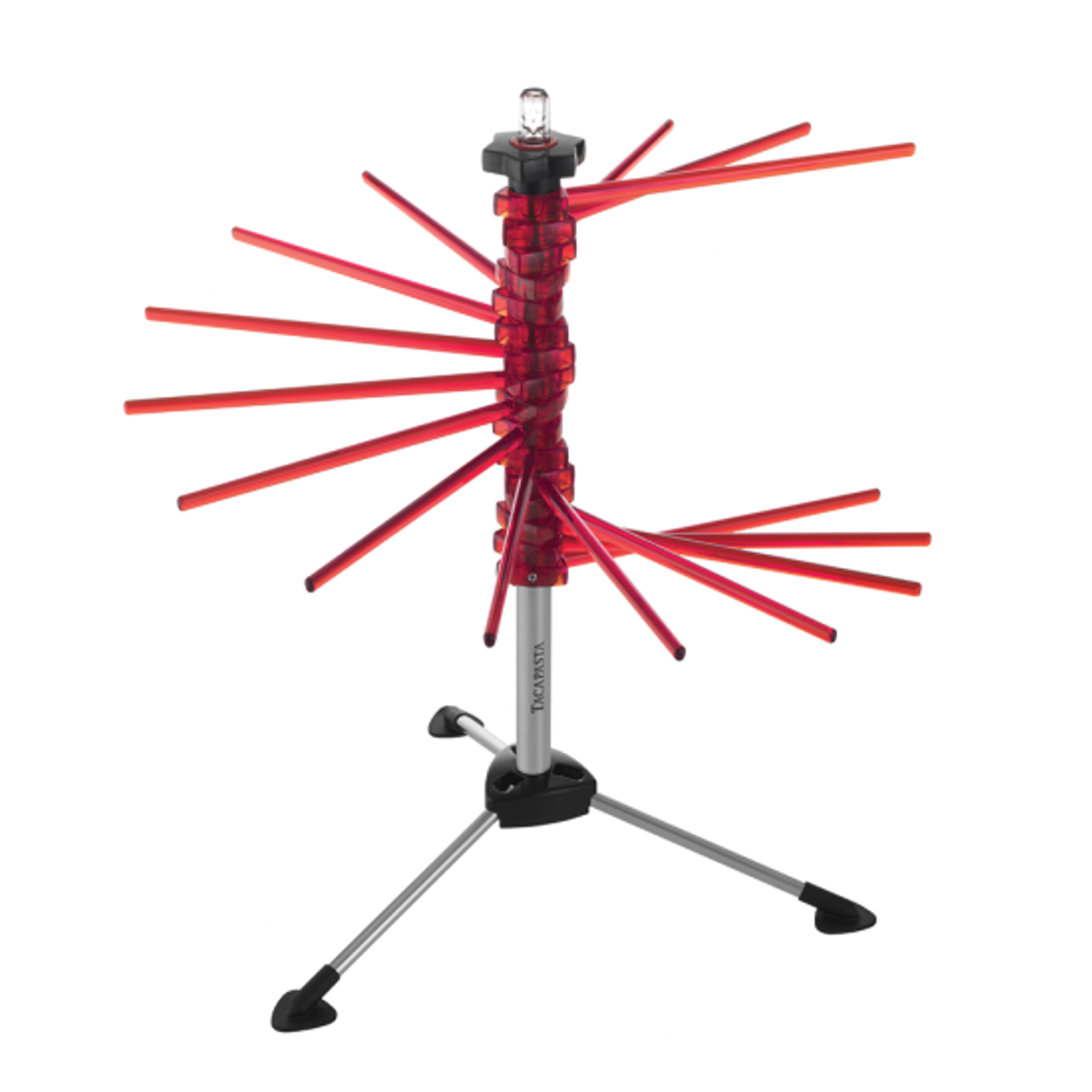 This Atlas Pasta Drying Rack offers up ample space to dry up to four pounds of long pasta. Made in Italy from steel and polycarbonate, the drying rack is sturdy, durable, and contains 16 rods that fan out for quick drying access and compact storage. After you make your fresh long pasta, dry out your spaghetti, fettuccine, tagliatelle, and more on this handy rack. Measures 18.5 x 2.75-Inches and easily wipes clean with a dry brush or cloth.
