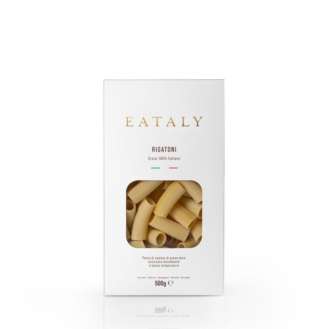 Eataly’s 100% Italian Wheat Rigatoni is made with the best raw materials and traditional processes, to offer a product of excellence.Durum wheat semolina (100% Italian origin) and water are the only ingredients needed to create this great traditional classic. The slow bronze drawing and the long drying at low temperature allow the characteristics of the dough to be preserved in the best possible way and to obtain a rough and tasty dough, ideal for all sauces.Excellent with sausage and saffron but also with a simple and quick sauce like cherry tomatoes and basil.