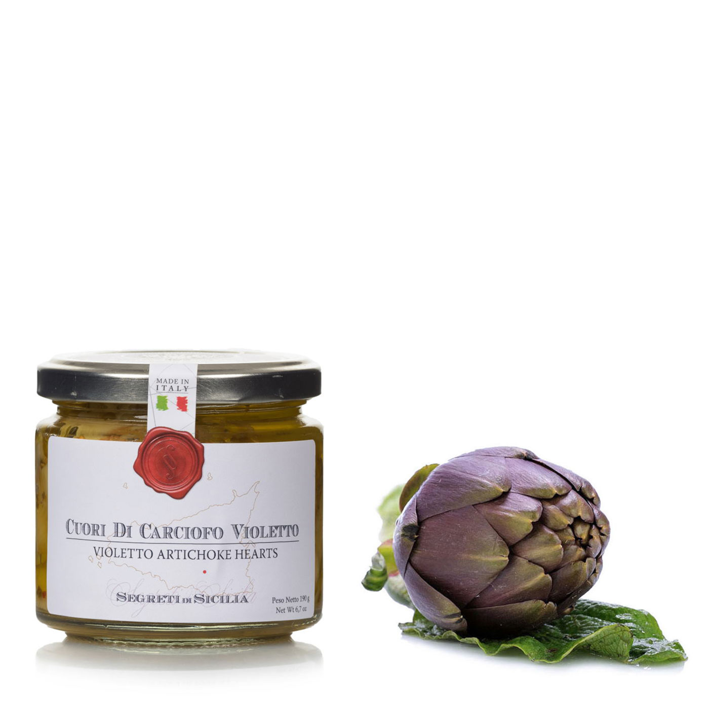Sicilian artichoke hearts from the local Violetto variety are preserved in Frantoio Cutrera’s Gran Cru Biancolilla extra virgin olive oil, along with vinegar, mint, Sicilian red garlic, chili, and Sicilian sea salt.Enjoy the savory product as an antipasto, over toasted bread for bruschetta, or in a sandwich.