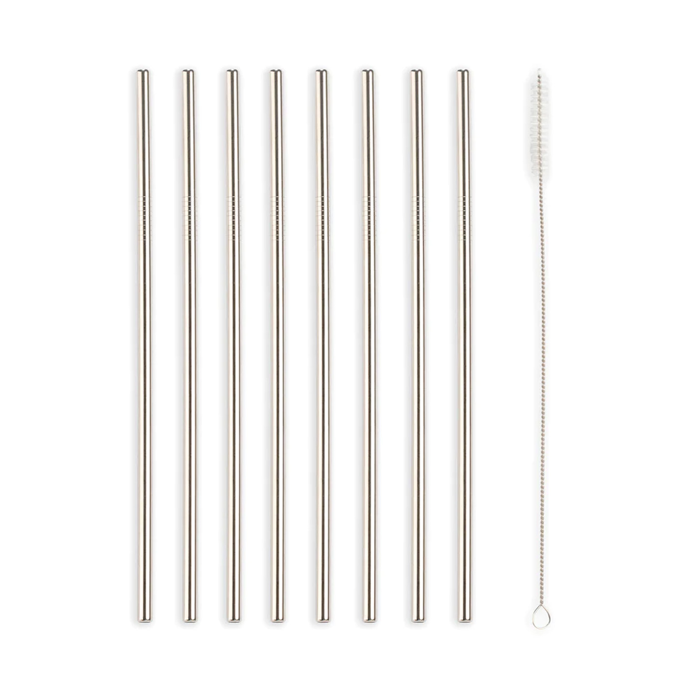 Stainless Steel Straws from Kikkerland! Made from sturdy stainless steel, these straws can be used over and over and washed with the brush included in the package.