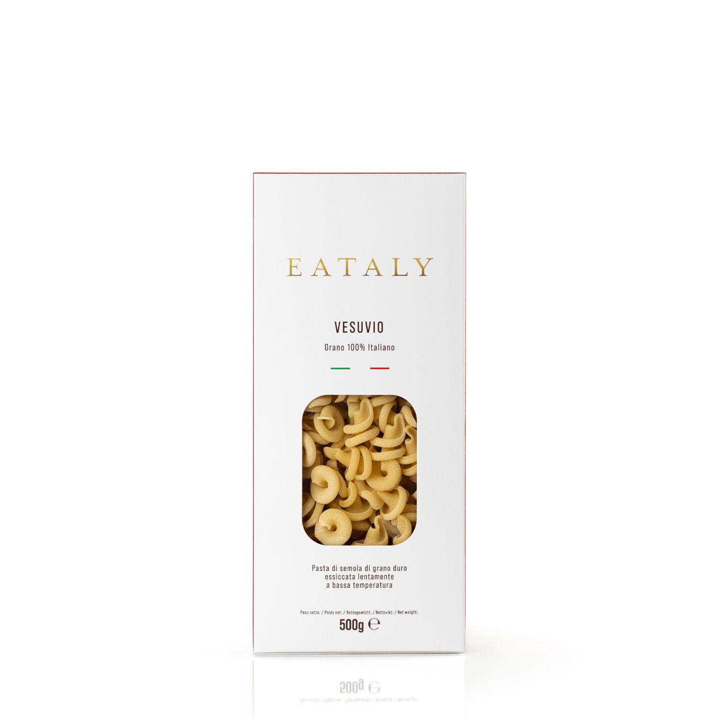 Vesuvio 100% Italian Wheat from Eataly: a truly unique pasta shape, created to enhance all the seasonings and give an explosion of flavour!This special shape was created to pay homage to a symbol of the Campania region and is made from a simple mixture of durum wheat semolina of Italian origin and water. The bronze drawing and the slow drying at low temperature also allow us to obtain a superior quality product, with excellent resistance to cooking and marked porosity to retain the seasoning.Try them with tomato, mushrooms and bacon for a classic boscaiola sauce or with escarole and anchovies to stay in the Campania region.